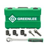 O Kit Vazador de Chapa Manual 1/2″ a 2″ 7238SB da GREENLEE é uma excelente opção para perfuração de chapas, possui mecanismos de catraca de cinco graus e pinos de tração para efetuar rosqueamento das matrizes com facilidade.